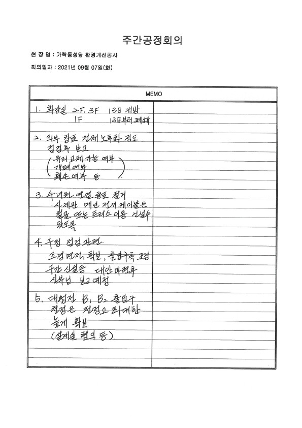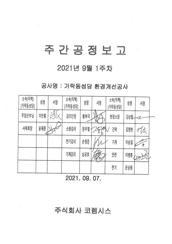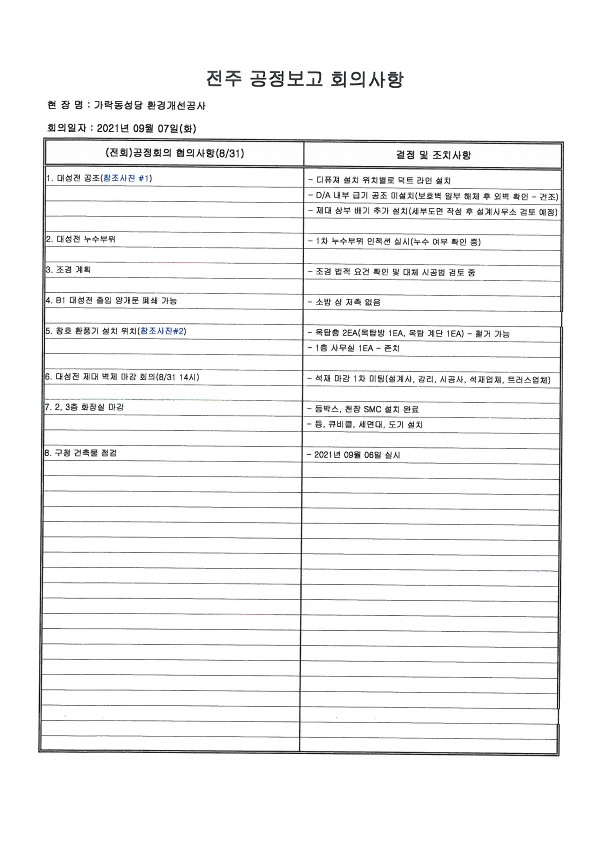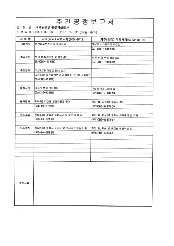 :: (21-09-07) 9월 1주차_주간공정회의 보고서