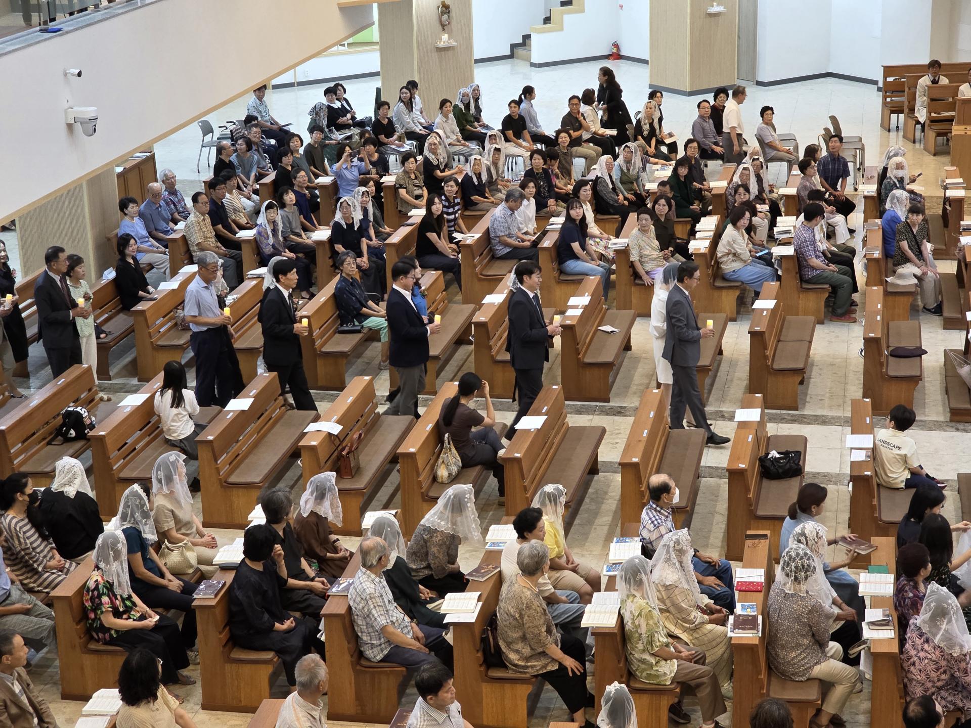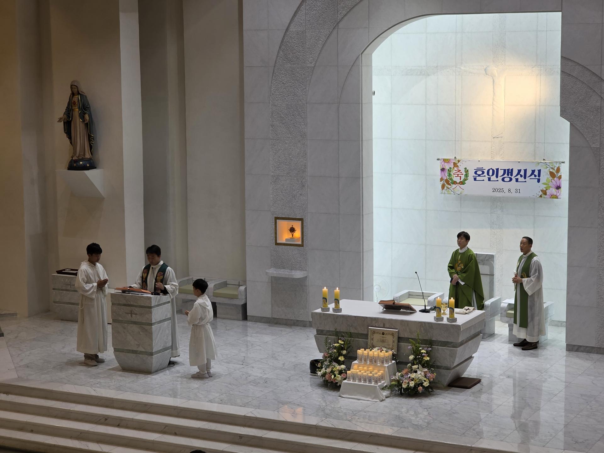 8월 31일 교중미사 중, 40쌍의 부부들이 함께하는 혼인 갱신식이 거행되었습니다.