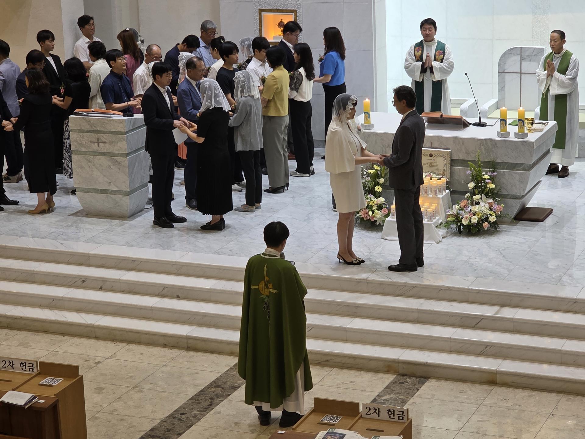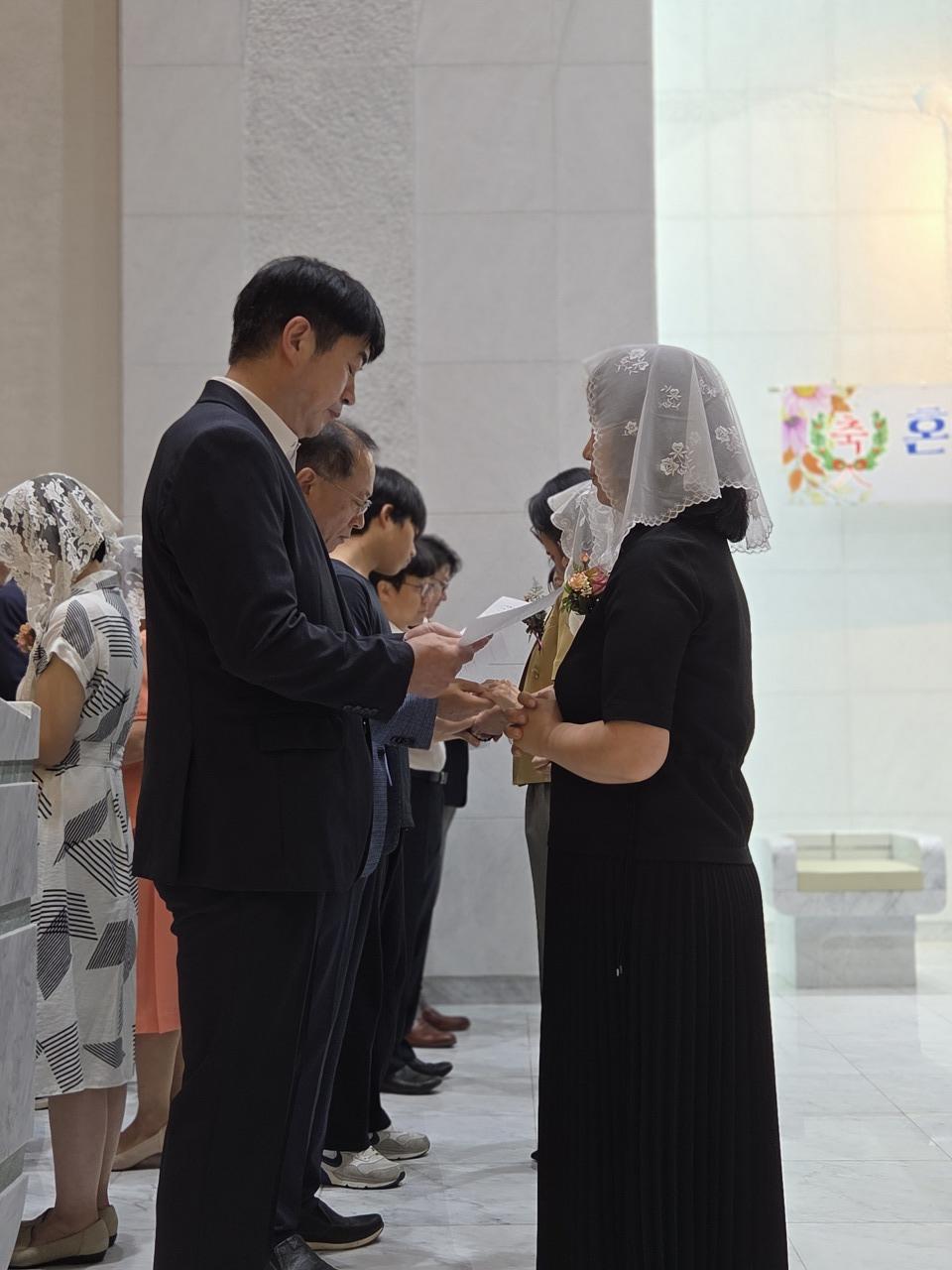 하느님 앞에서 맺어진 혼인의 은총을 다시 떠올리며, 서로에 대한 신뢰와 사랑을 새롭게 고백하는 뜻깊은 시간이었습니다.